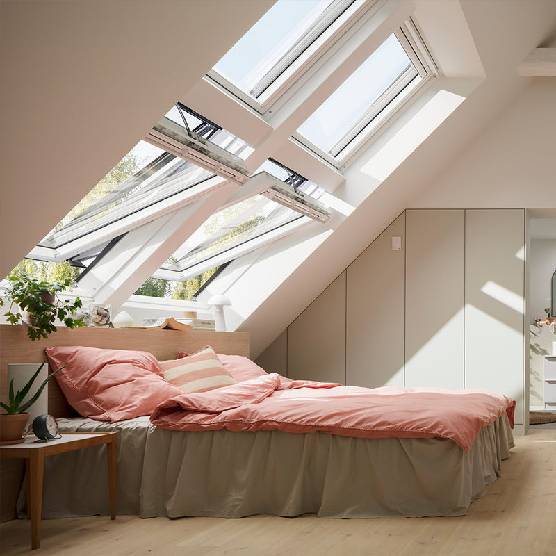 Put fresh air at your fingertips with a centre pivot roof window. Ideal in rooms with a low ceiling or for a better view of the surroundings below.
